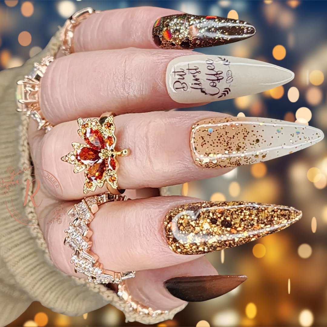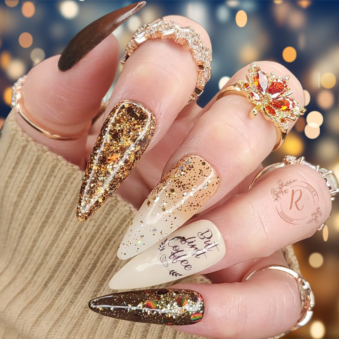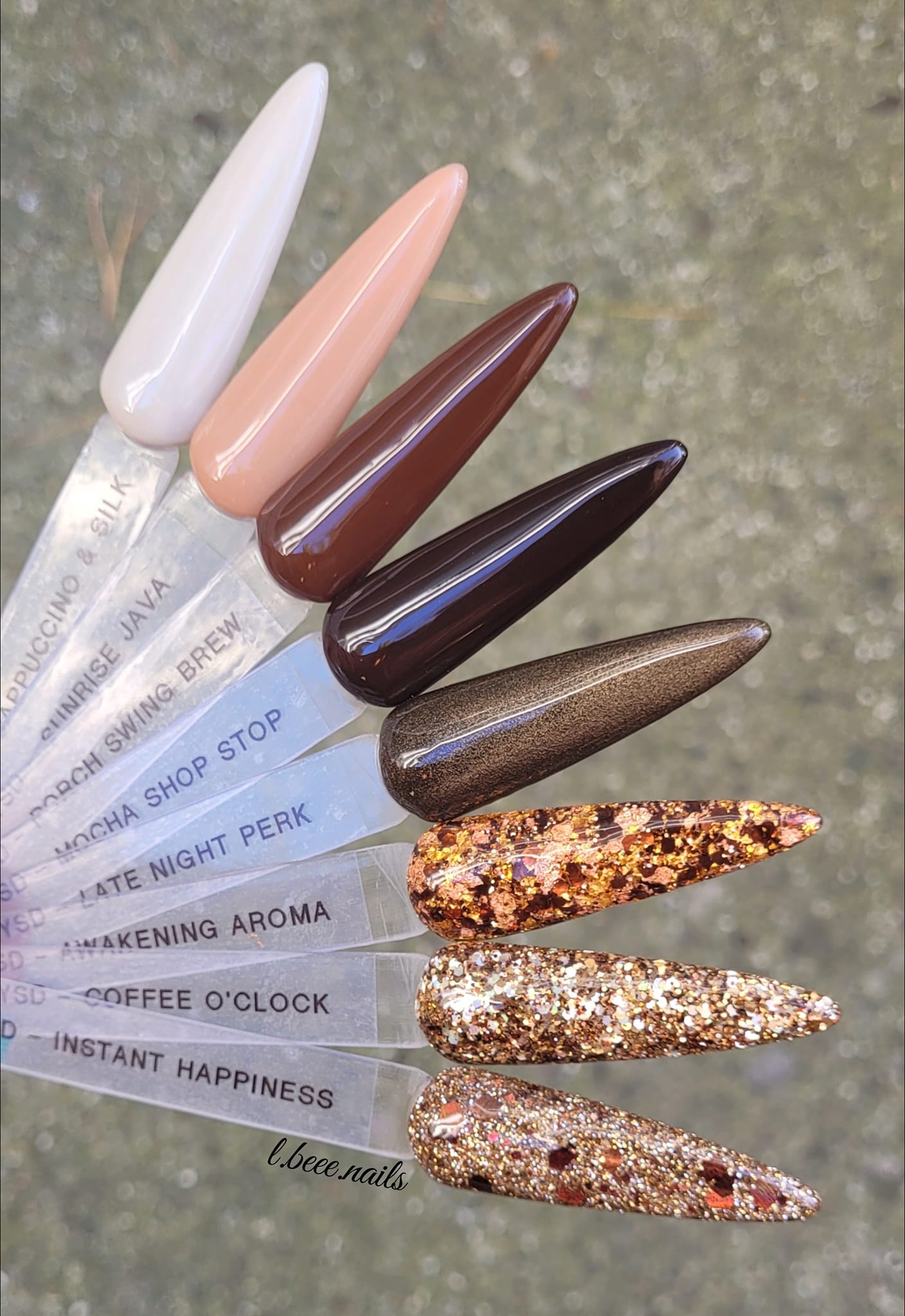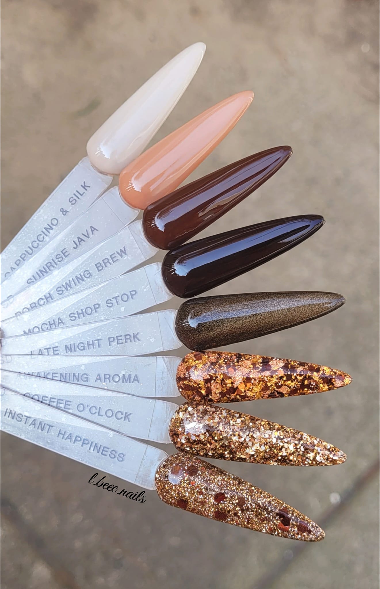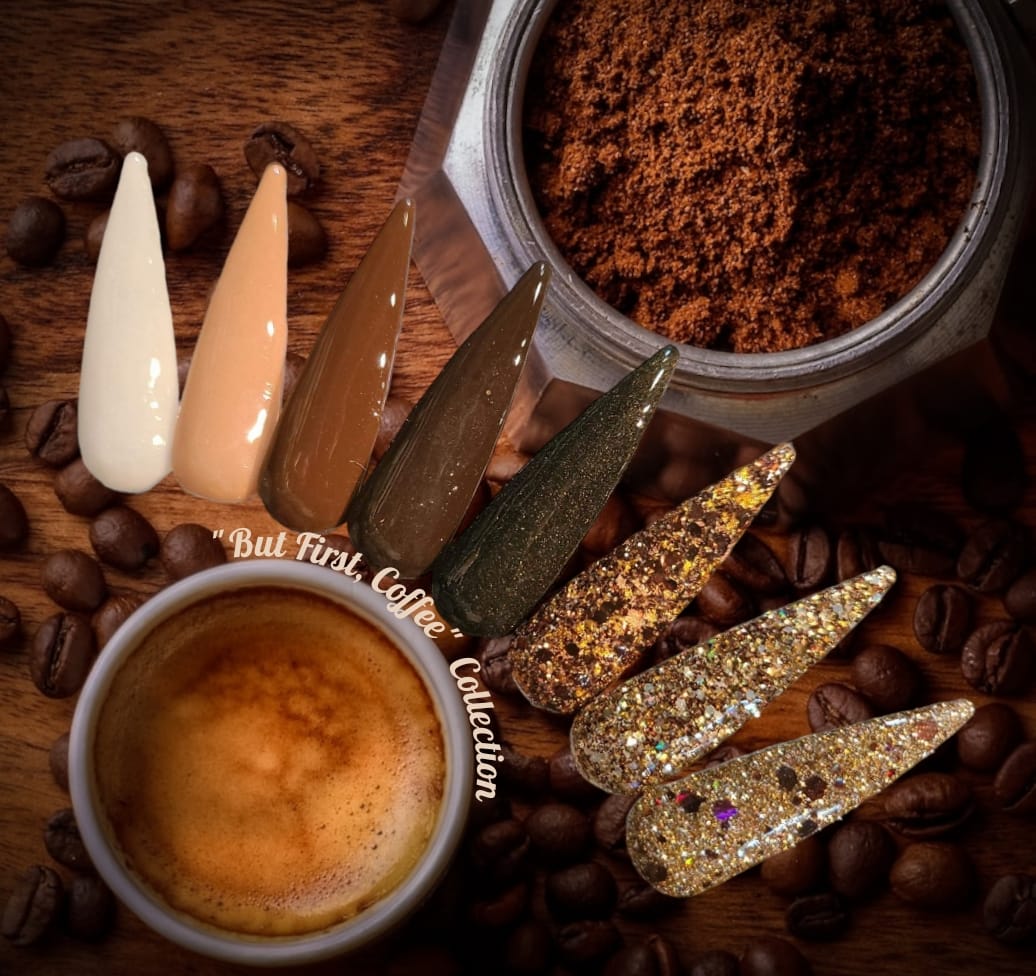 Welcome to that soothing relaxing experience you get when you wake up and brew your 1st cup of coffee. This collection will warm your soul as well with its rich coffee tonal set and gorgeous pairing glitters.