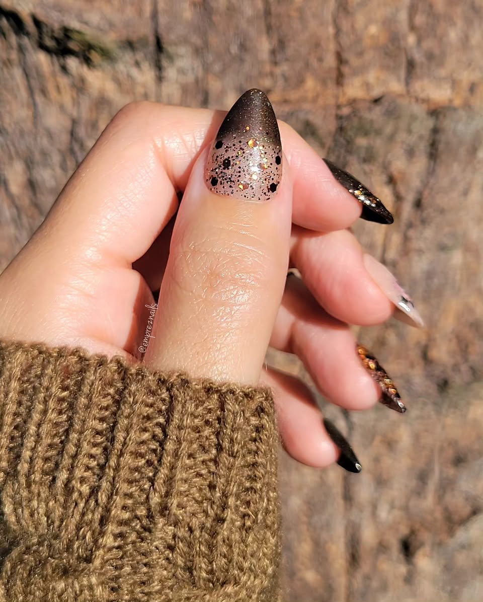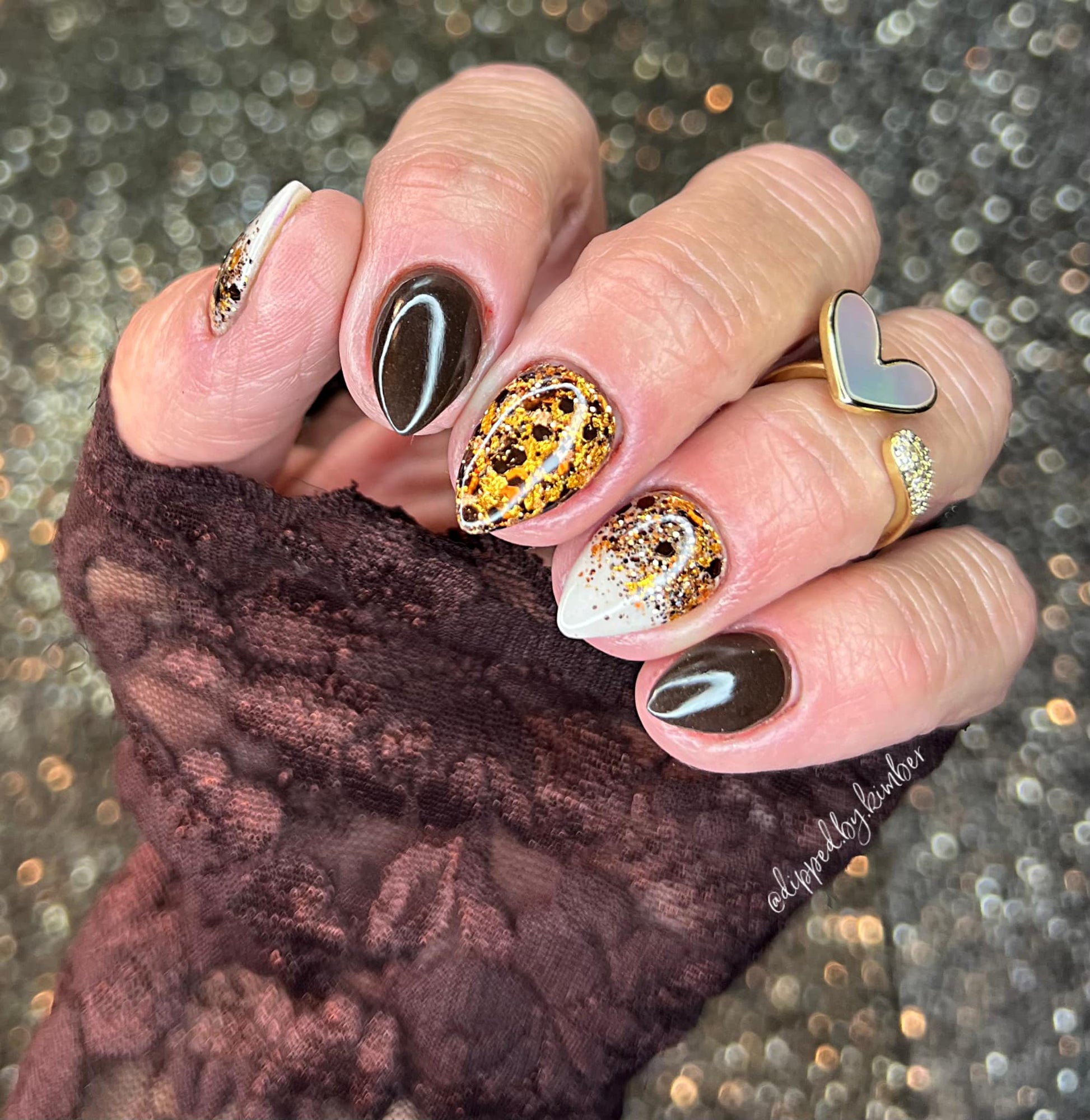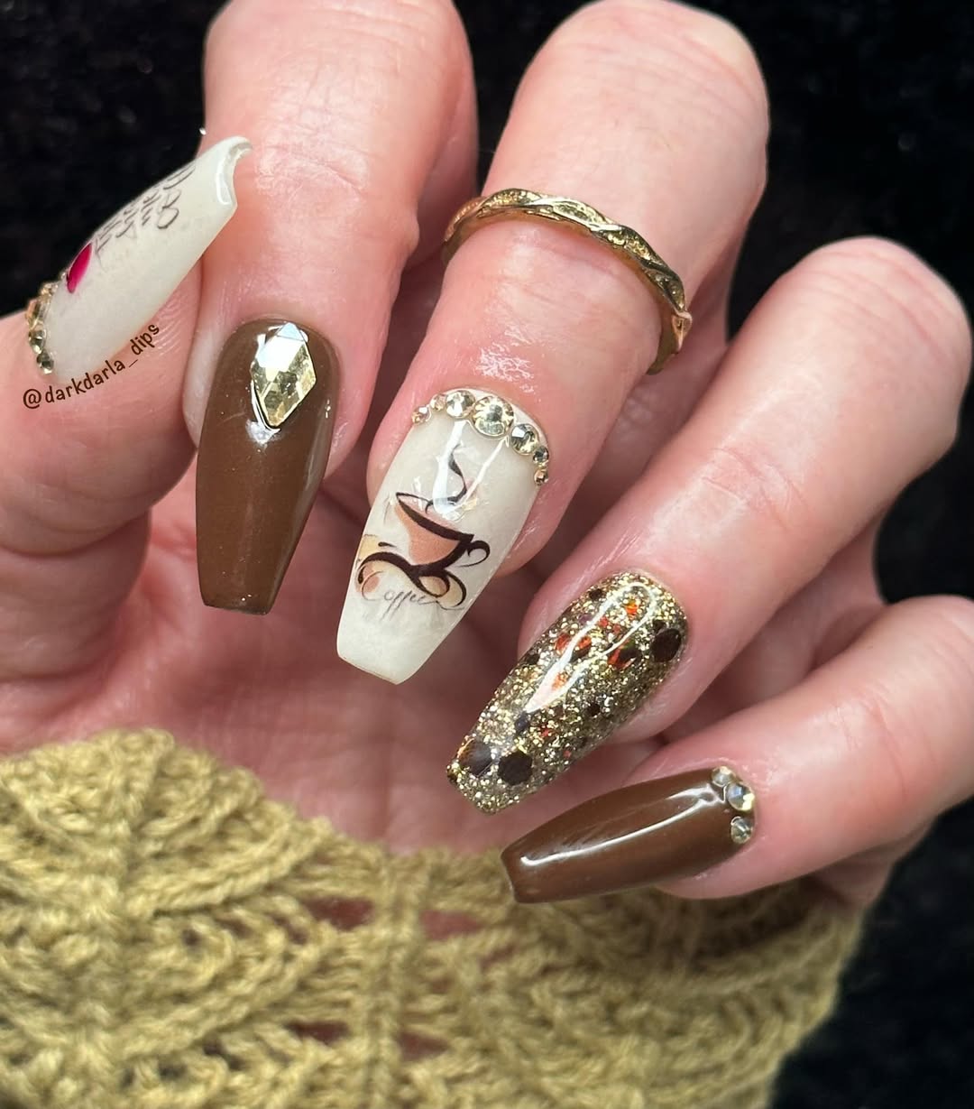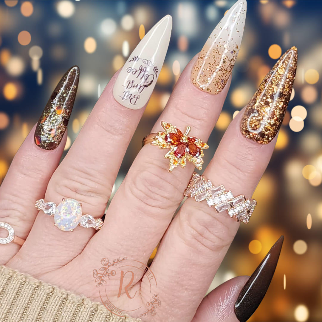 Welcome to that soothing relaxing experience you get when you wake up and brew your 1st cup of coffee. This collection will warm your soul as well with its rich coffee tonal set and gorgeous pairing glitters.