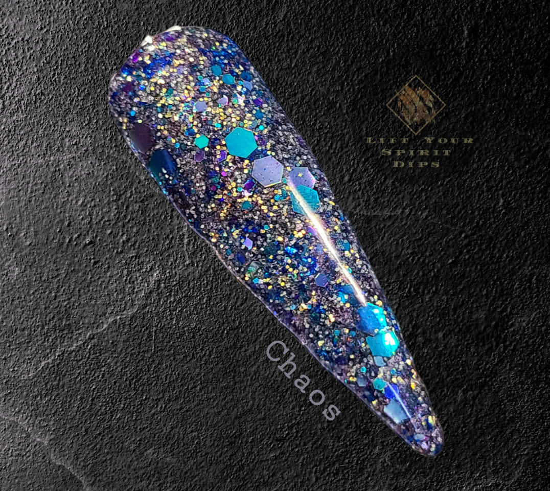 Chaos is a gorgeous sparkly dip of blues, purples, and iridescent gold. It was inspired by one of the beautiful Chaos Concept creations.