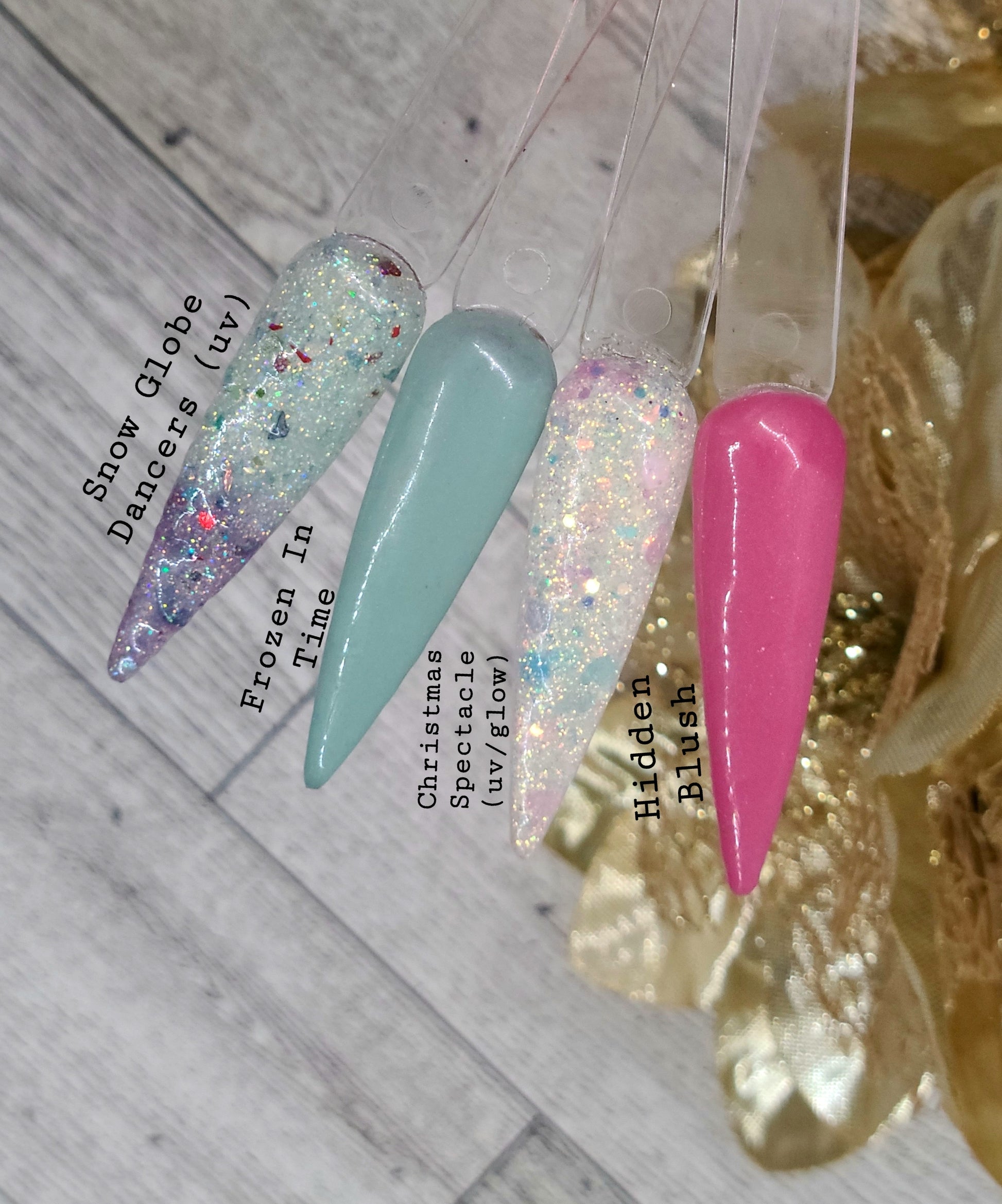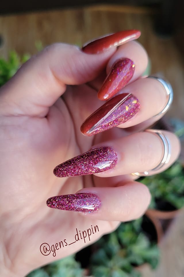 Christmas Masquerade Ball Collection consists of 21 dips! It's a versatile collection with a Christmas twist. It has solids, glitters, solar changing glitter, and shimmers.