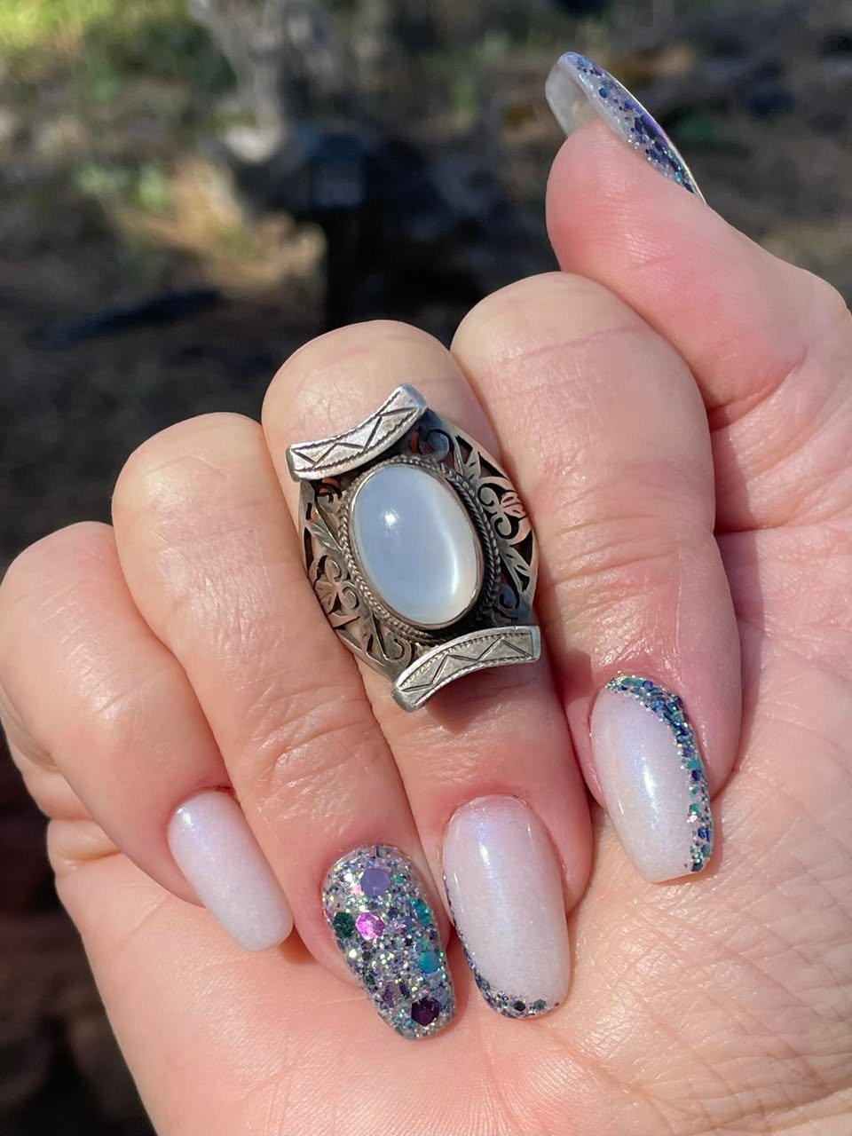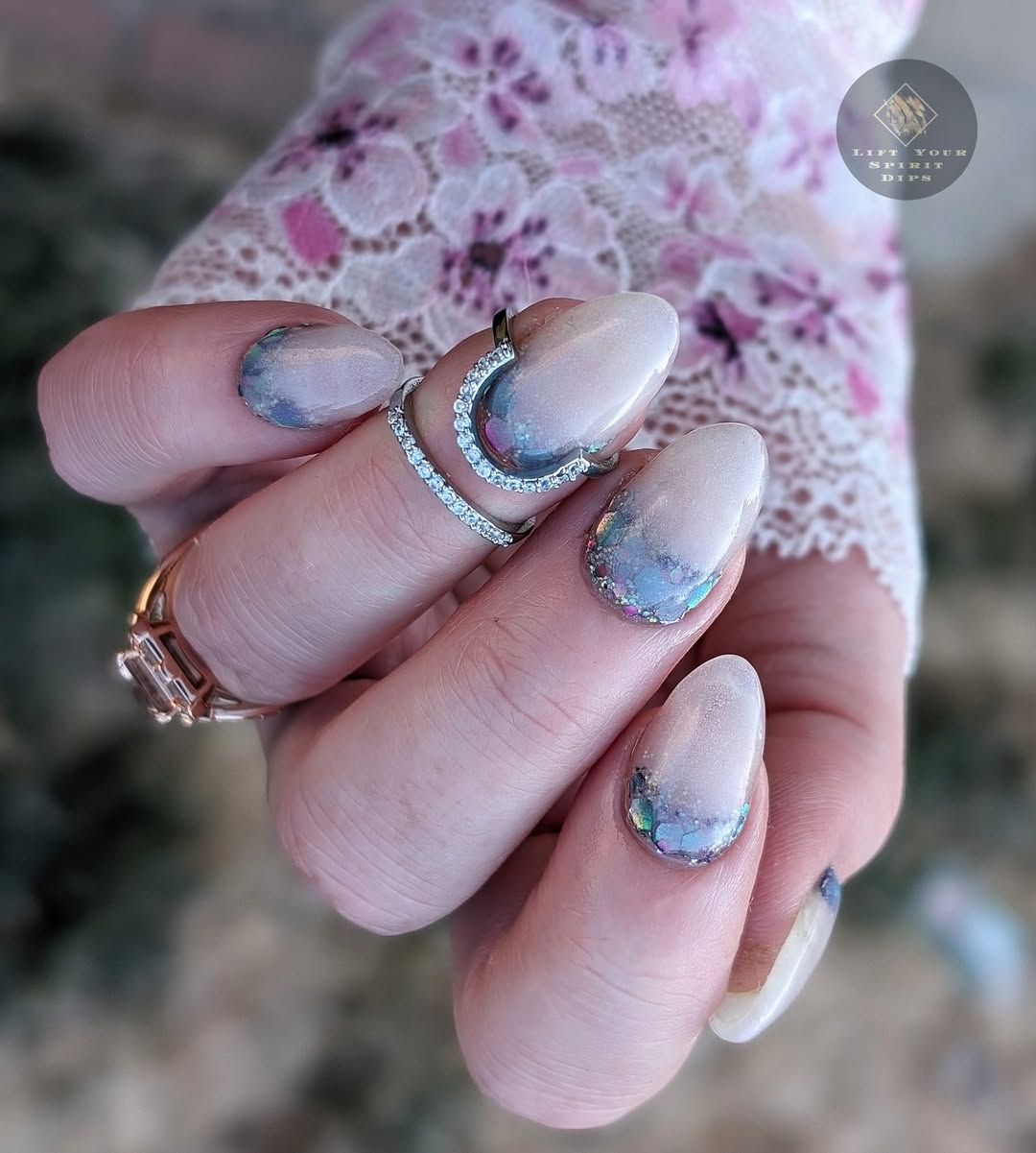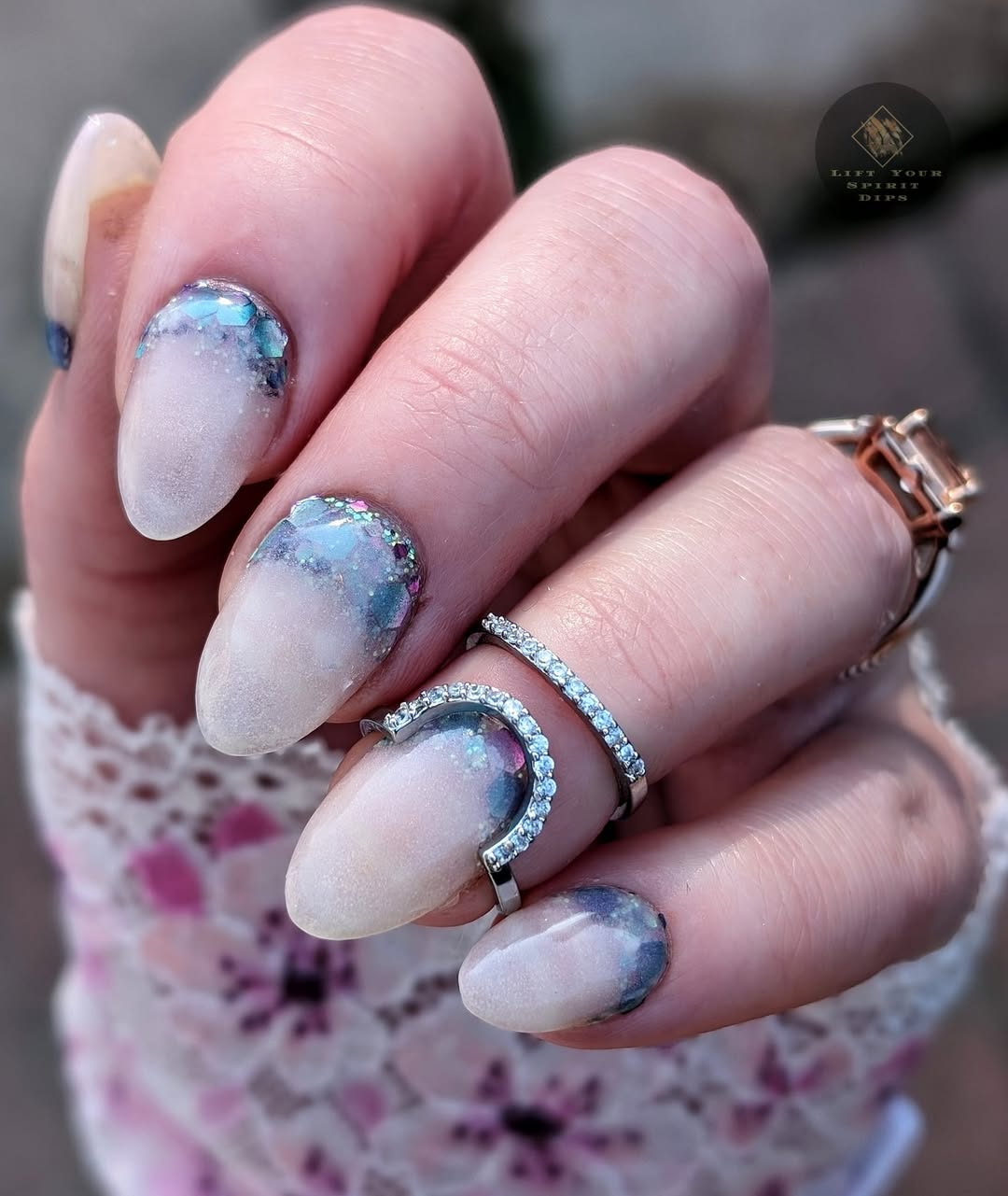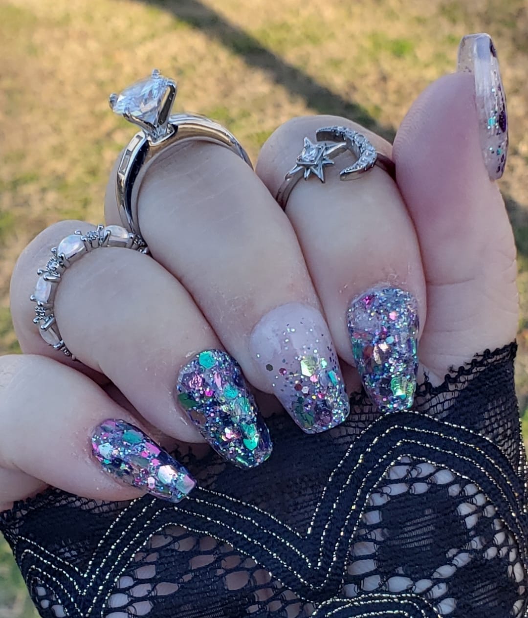 The June Birthday Duo consists of 2 dips: Luna (chunky, multi-colored glitter mix) and Moon-Stone (a purple translucent pearlescent dip).