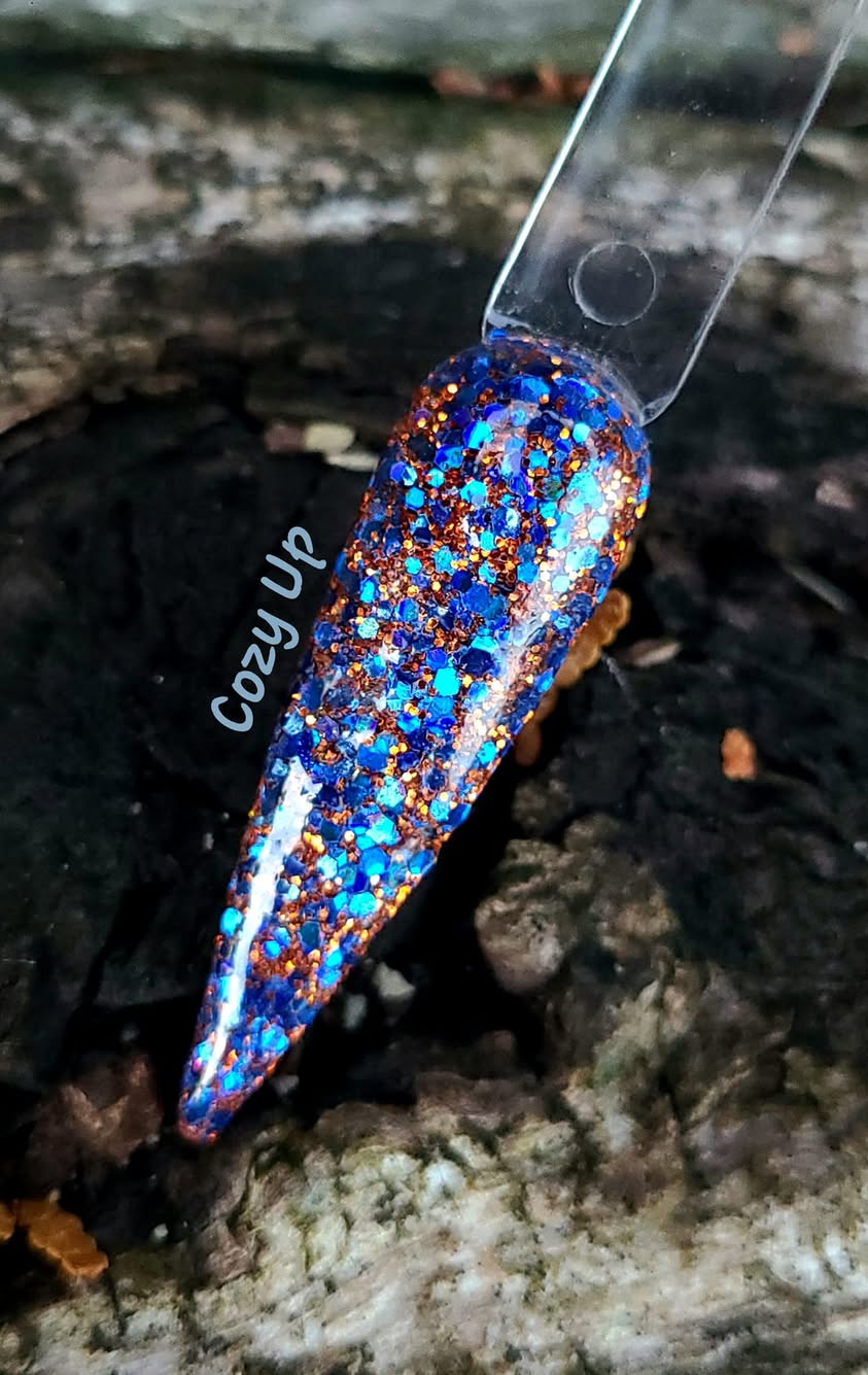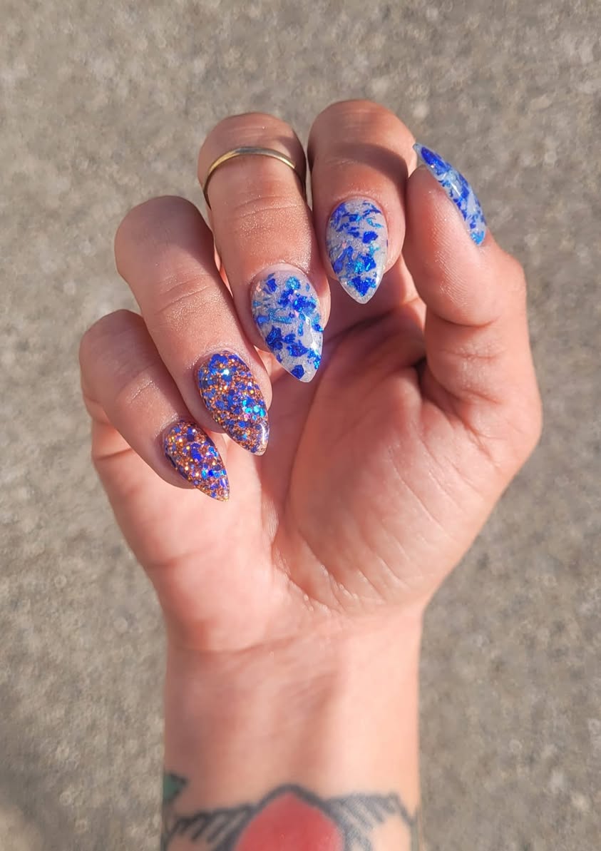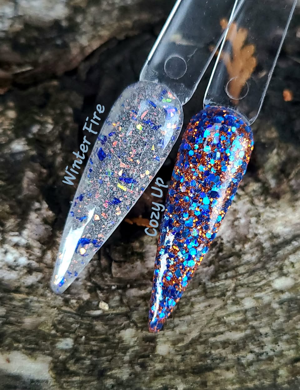 November Birthday duo is made up of a medium chunky glitter and a foil/flake dip.