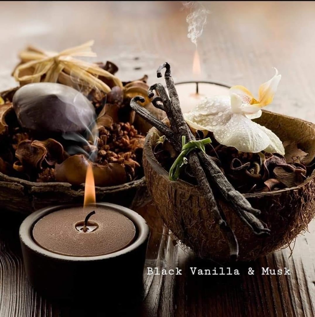 BLACK VANILLA & MUSK: Fragrant vanilla beans are blended with sweet apple, bergamot, blonde woods and sensual musk.