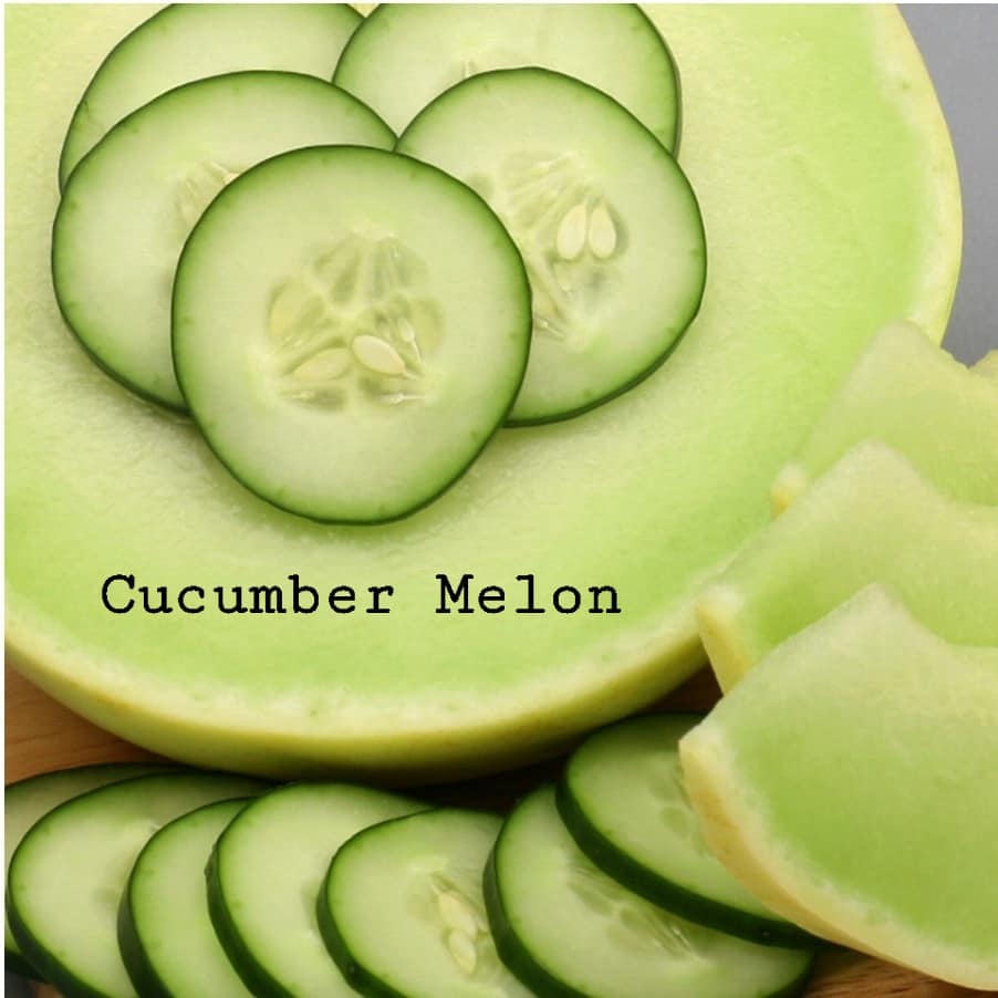 CUCUMBER MELON: Fresh, watery summer honeydew and sweet watermelon combined with crisp, cool cucumber.