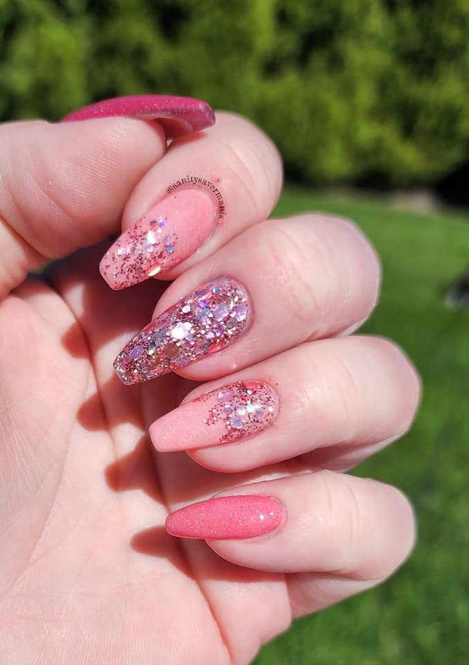 Transform your nails with our SUNSET SHIMMER COLLECTION. These beautiful pink dip powders shimmer and shift in color, giving you a unique and eye-catching manicure.